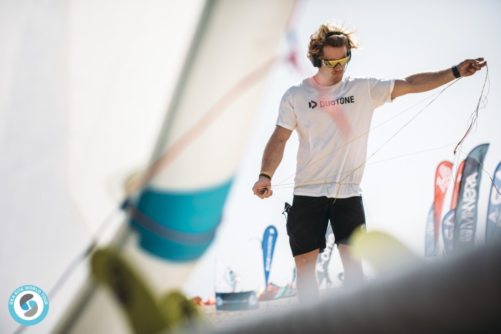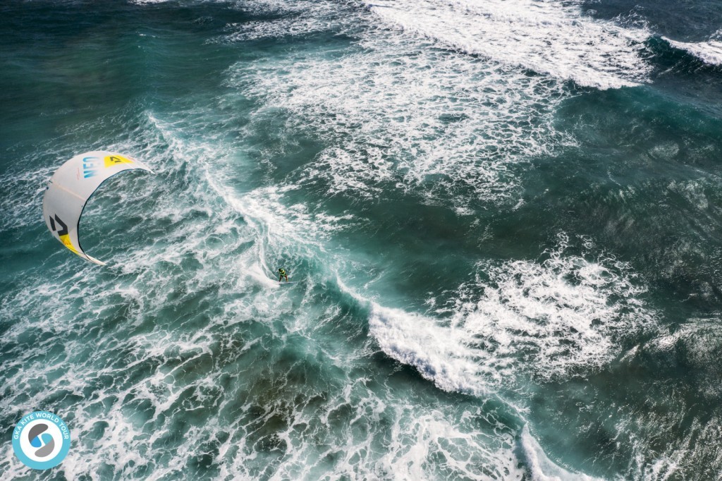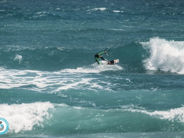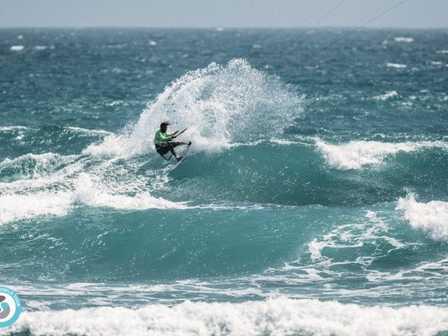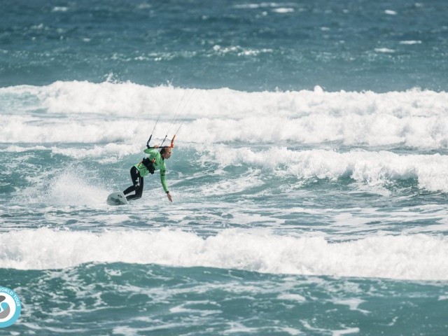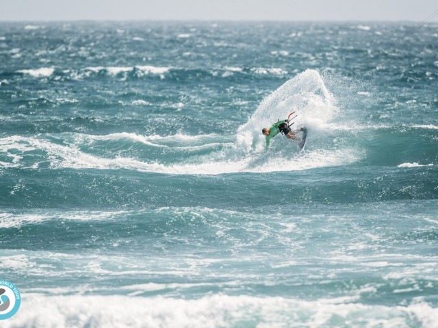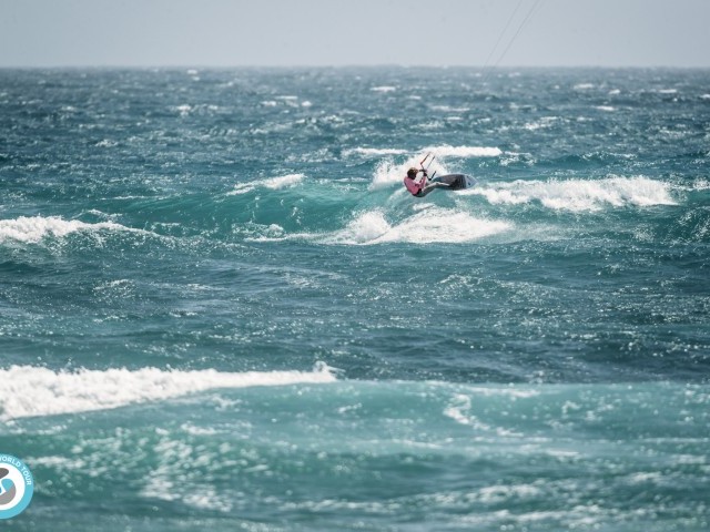 The wind had dropped slightly from yesterday, fluctuating between 15-20 knots, riders were opting for bigger kites, and those that under chose struggled or switched kites mid-heat.