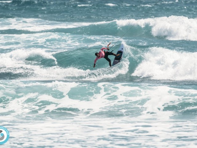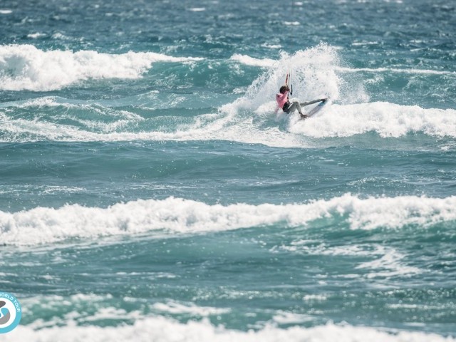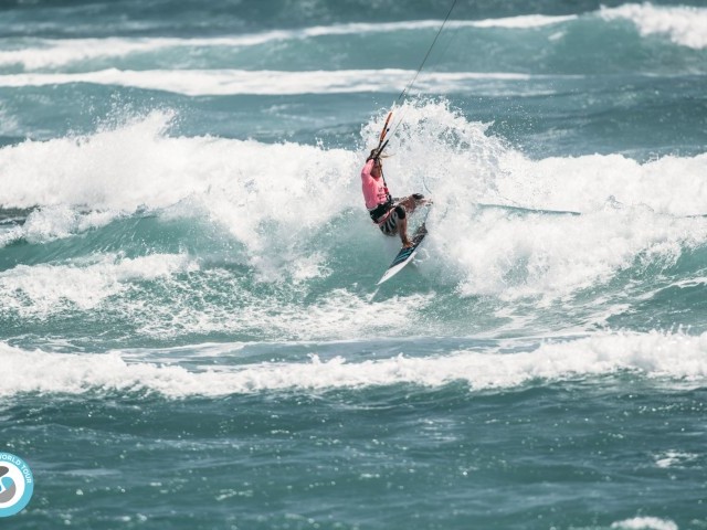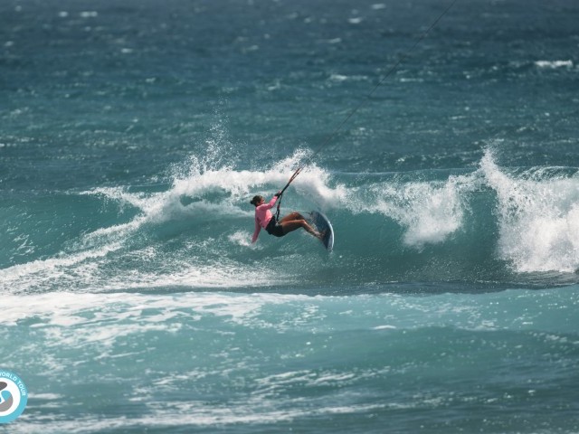 In the last heat of the day, Carla had a tough ride against local rider Irati Fonseca CV. The Cape Verdean rode with style, and both women gave it their all in the small waves and light wind. Experience prevailed giving Carla the lead with a complete score of 8.13. She now goes through to face Peri Roberts in the next round, where there is sure to be powerful riding from both women!