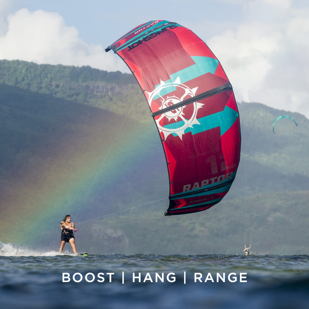 Next up we have the Raptor V1. The Raptor is an entirely new kite in our range and one of the most welcomed additions. The Raptor is a medium to high aspect, five strut kite, that is designed to provide hero level boosting and hangtime. This kite has incredible range and handles heavy winds and gusts especially well. The Raptor is built on an open C hybrid platform, which gives the rider a great feel of the bar while still having next level upwind performance and water relaunch. If you are looking for a kite for a high performance freeride or big air boosting, look no further than the Raptor.