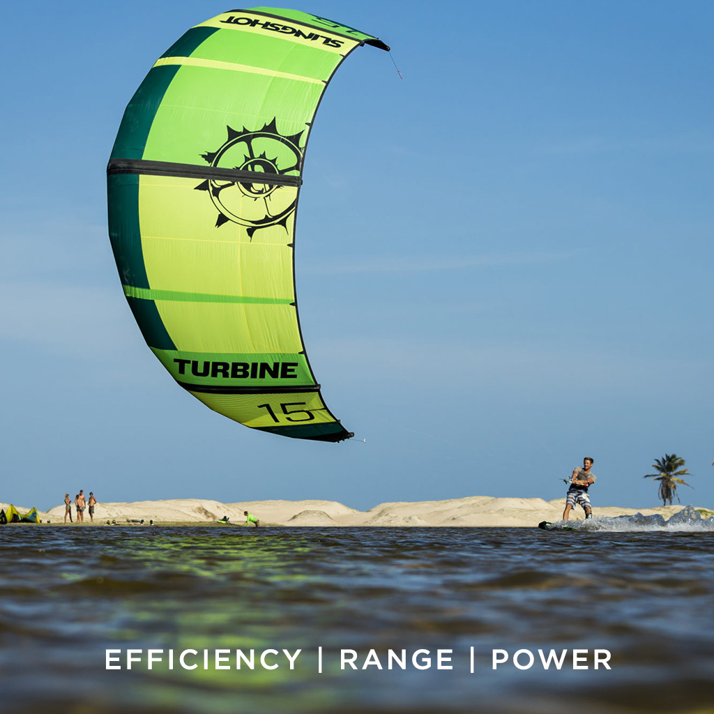 Here we are looking at the Turbine V10. The Turbine is our dedicated light wind solution. The five struts, open Delta C, shape focuses on efficiency and its higher aspect design ensures that if there is wind, you will be able to ride and stay upwind. The Turbine’s highly tuned shape and profile also deliver amazing range and water relaunch. This is especially useful when the wind picks up, or if you are to crash your kite in those marginal conditions. The Turbine has been a session-saving insurance policy for over a decade. If you need a light wind kite, the Turbine is the best choice.