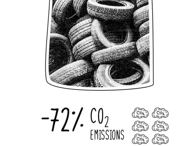 Carbon black is a key ingredient in the manufacture of neoprene. At SHEICO it is pyrolysed from used tyres, which reduces energy consumption and saves 200 g of CO² emissions per wetsuit.