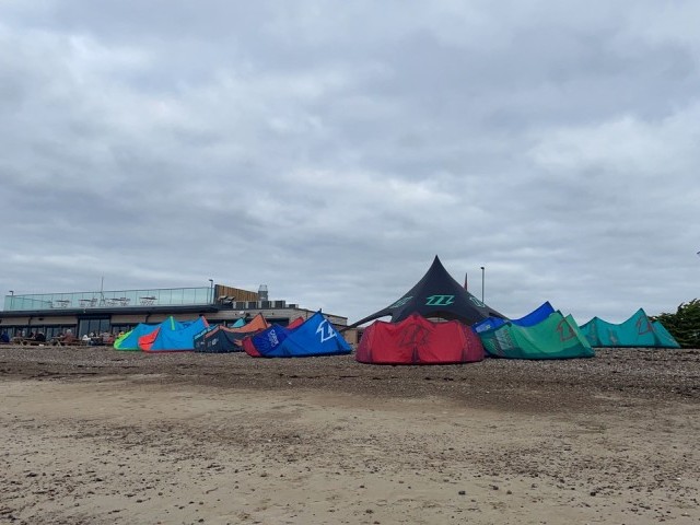 Sunday was a fantastic day. We had North Kiteboarding, Ozone, Axis, Core, Duotone, Slingshot and Ride Engine join us, bringing all the latest kit and tech! As the forecast was better in the morning, all the brands were pitched and ready to go for 9 am! Try the latest North Orbit or try Slingshots new ‘Machine’, or how about the 2022 Rebel? All this new gear was with us and at the hands of people to try! A real treat was having both Lewis Crathern and Aaron Hadlow join us for the day. Sunday morning was all about riding and getting a real test for how other kit might feel. Demoing equipment is so valuable for riders to “try before they buy, and this is what our Test Centre is all about!