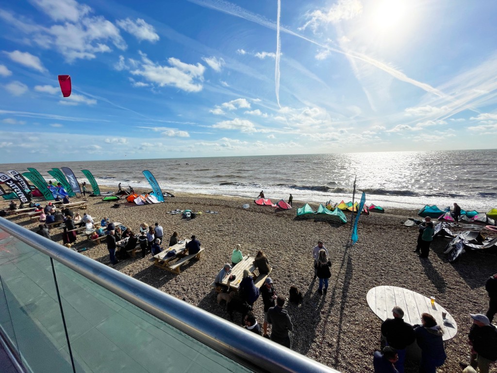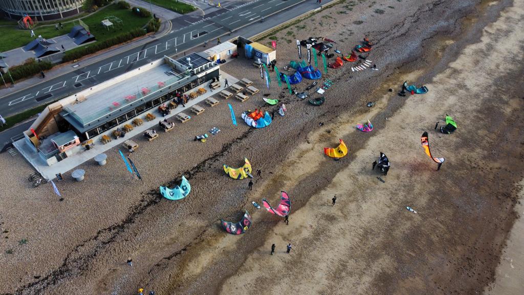 Saturday was a great day. We had the team from North Kiteboarding, Ozone and Axis down, and with a steady light breeze in the afternoon, it was all about foiling. Great to see a handful of riders out on the water showcasing some foiling. The venue where we’re based is the All-New ‘The Beach @ Littlehampton’, and with a place that serves great food, drink and even booze, it goes hand in hand for Demos!