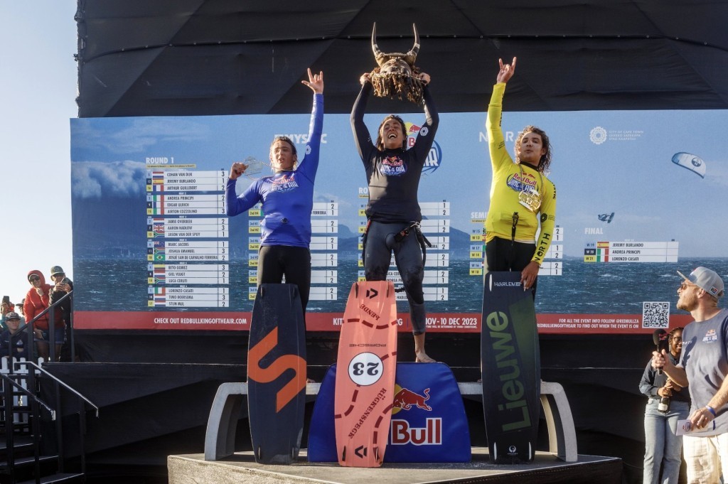 Italian teenager Andrea Principi overcame fellow countryman Lorenzo Casati and Spaniard Jeremy Burlando to Red Bull King of the Air on Tuesday, 5 December. The three young riders are good friends and training partners, and the 6000-stong crowd on the beach and the thousands glued to the Red Bull TV worldwide were treated to a fitting finale which saw all three throw some of the biggest scores of the entire event.