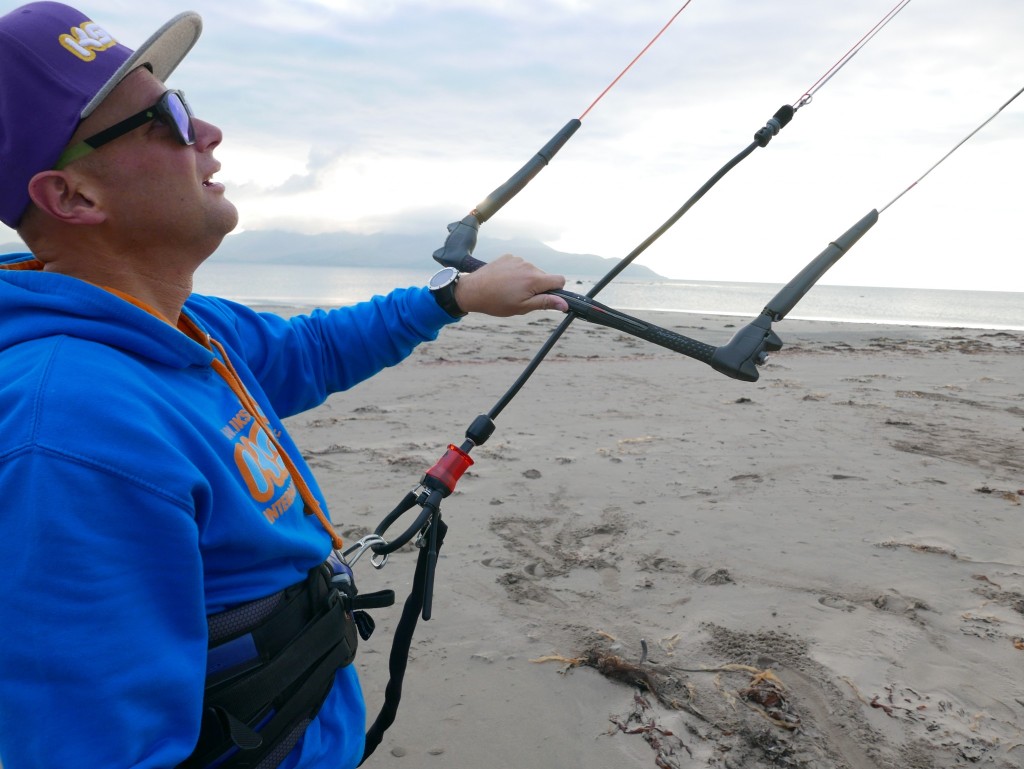 Another advantage is that when you crash the depower system doesn’t sink and pull your lines down. All your lines float on the surface along with the bar. That’s a significant safety aspect that we like. The mechanism is easy to use, you can depower the kite totally in under a second if you rapidly click the button. Powering up takes a little longer, but with practice, you can get that pretty quickly too.