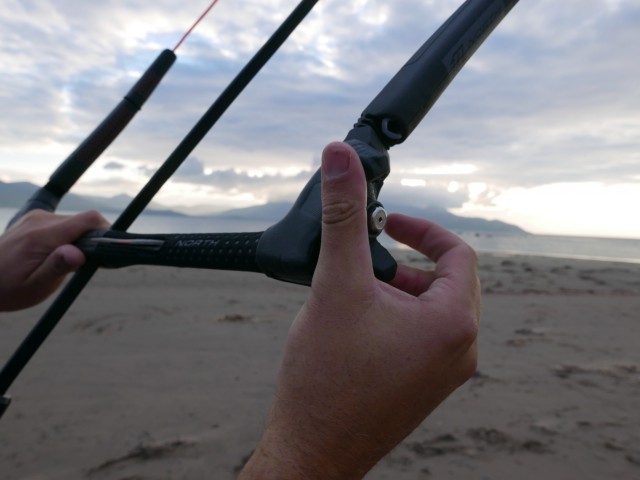 We have ridden this bar a few times on North meetings, so to finally get our hands on one for more than a couple of hours was a real treat. The first bar North sent us was a final production bar from their meeting in Tarifa. The bar has been used for two weeks by dealers and shops out there and then sent to us. We’ve had it for about six weeks now and have not rinsed it, cleaned it or done anything other than treating it badly. We ride a mixture of sandy and shingle beaches, and we ride a lot. I’ve been using it on just about every test kite we have too, as I wanted to see if it really did work with all four line kites on the market. I’m pleased to report it does, and despite our abuse, it is working perfectly still.