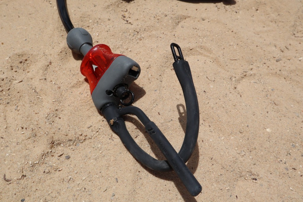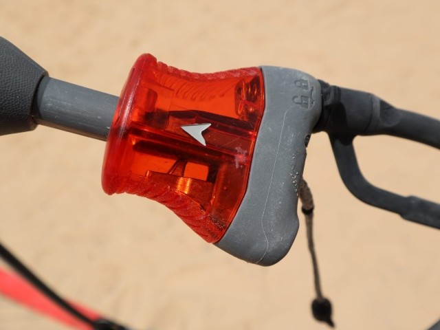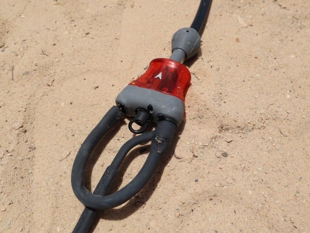 The colour-coded grip, leader tubing and line retainer pull tabs give a nod to North’s sailing heritage, port (red) and starboard (green). The grip on the bar itself is quite thin and very comfortable, even for people with small hands. North Kiteboarding have added a tactile offset finger bar which lets your hands know when the bar is the wrong way round. Pick it up the wrong way, and it just feels weird. This means after you crash, it’s easy to sense the bar being the right way round.