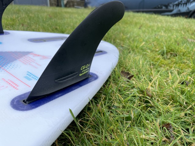 We tested a mixed set of fins, which consists of large side fins and a medium middle fin on a Duotone Session. This is our go-to big wave board as it cuts through the chop, and when it's big here in Wales, it's usually stormy and pretty messy. They definitely felt smoother, and we ran them back to back with the standard Duotone offering. While using the Quobba fins, the board felt more planted, and the chatter you often get was smoothed out.