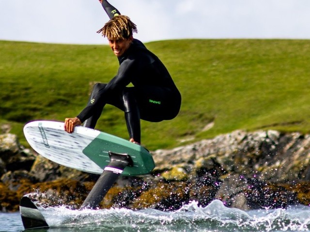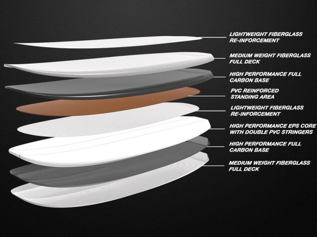 With a rigid foam core construction and full carbon wrap, this board effectively transfers power from your legs to the foil. The EPS core is exceptionally light and buoyant, further enhanced by the full carbon wrap. The subtle concave deck allows for even greater control over the board and foil, especially with longer masts.