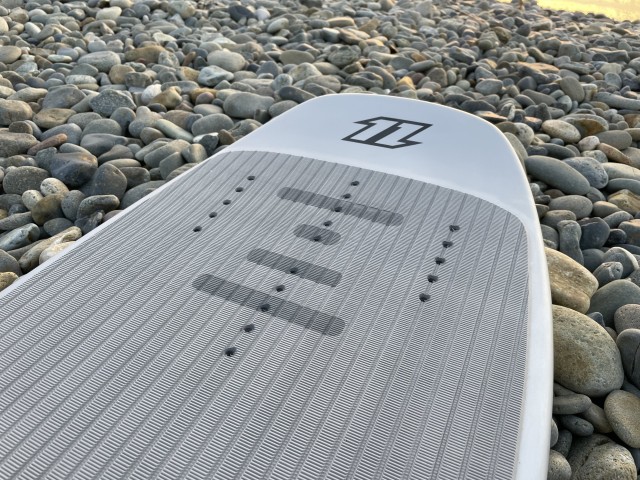 It's a simple design with a full deck pad and a full quota of inserts for every strap position imaginable. On the underside, you will find a slight concave, and there is plenty of nose rocker for those pesky touchdowns too. The board features the Drop Box track system too; by splitting the two tracks into four and having bolt-sized holes at the top of each track, you can leave your bolts attached to your mast and simply drop the mast plate into the board and tighten. Simple and clever!