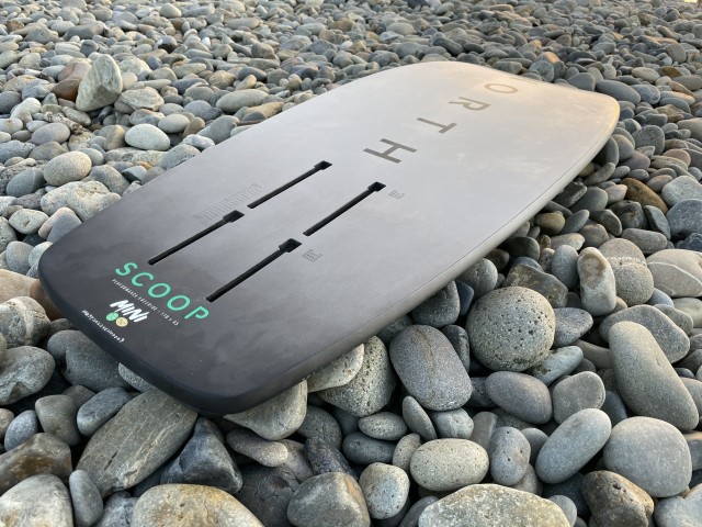 Looking for a minimalist foil board that's light and stiff? The Scoop Mini from North Kiteboarding could be the answer. It's a small board at 110cm or 3'7 ft depending on your persuasion. With a hybrid carbon construction and a high-density foam core delivering just 10l of volume, this is a board for experienced foilers looking for a small board to let them feel as free as possible.