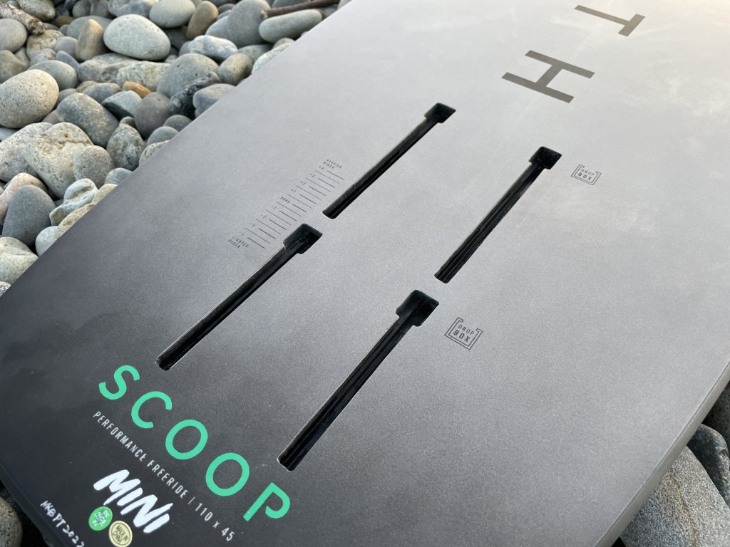 This is going to suit most experienced riders, especially with the multitude of strap configurations, and of course, you can go strapless too. The board is very stiff. We noticed that immediately, every input of the feet is directly transported to the foil beneath you. Size-wise, it is small; I usually ride a 120. However, I didn't feel like the Scoop Mini was too much of a step down. The nose rocker really makes it more forgiving than the small stature suggests.