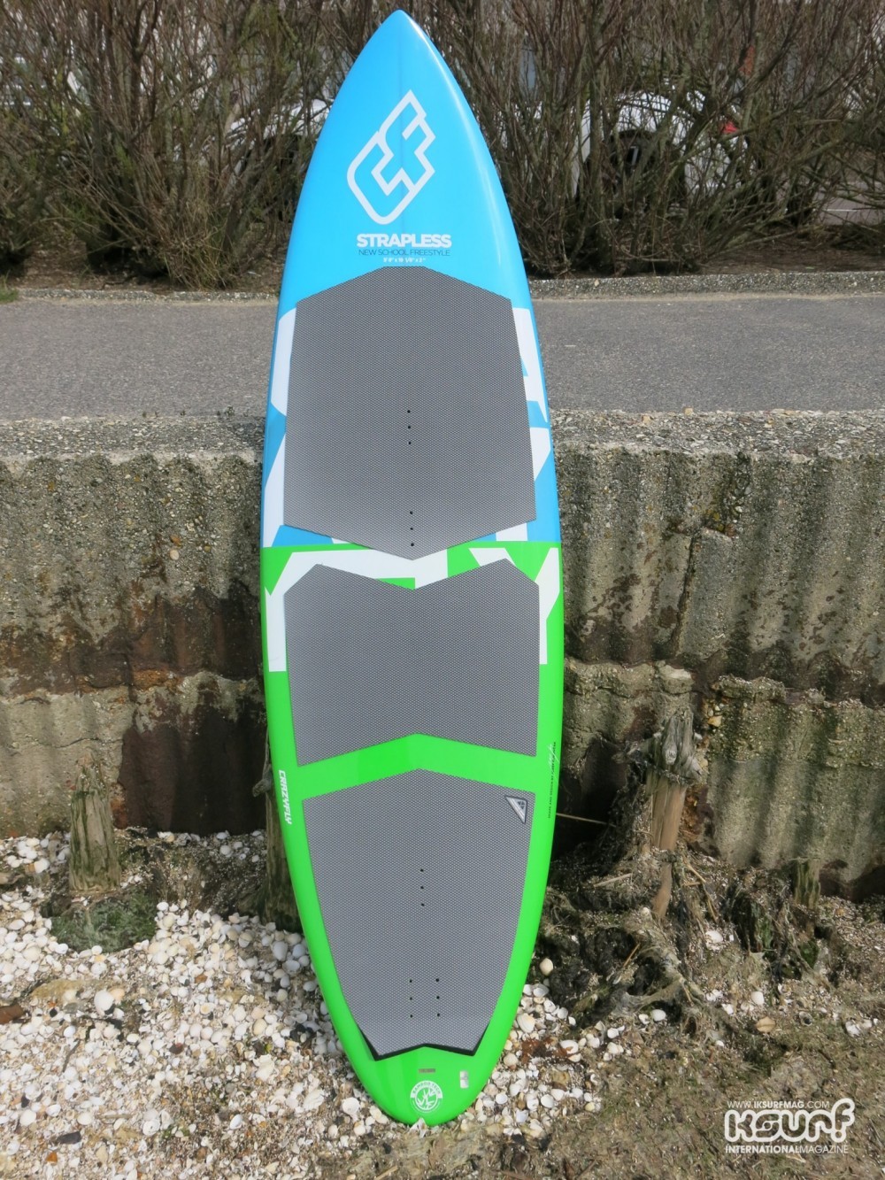 CrazyFly have been using some bold colours recently and the strapless is no exception, the gloss finish on the board is stunning and the whole package feels very polished. Something that is rather ironic about the Strapless is that you can screw straps into it…making it strapped. To be fair this is a great option to have, especially if you’re learning. A good way of learning to gybe can be to keep the front strap in, aiding stability, so this option definitely gets the thumbs up from us and makes the board far more versatile in terms of the kind of rider it will suit.