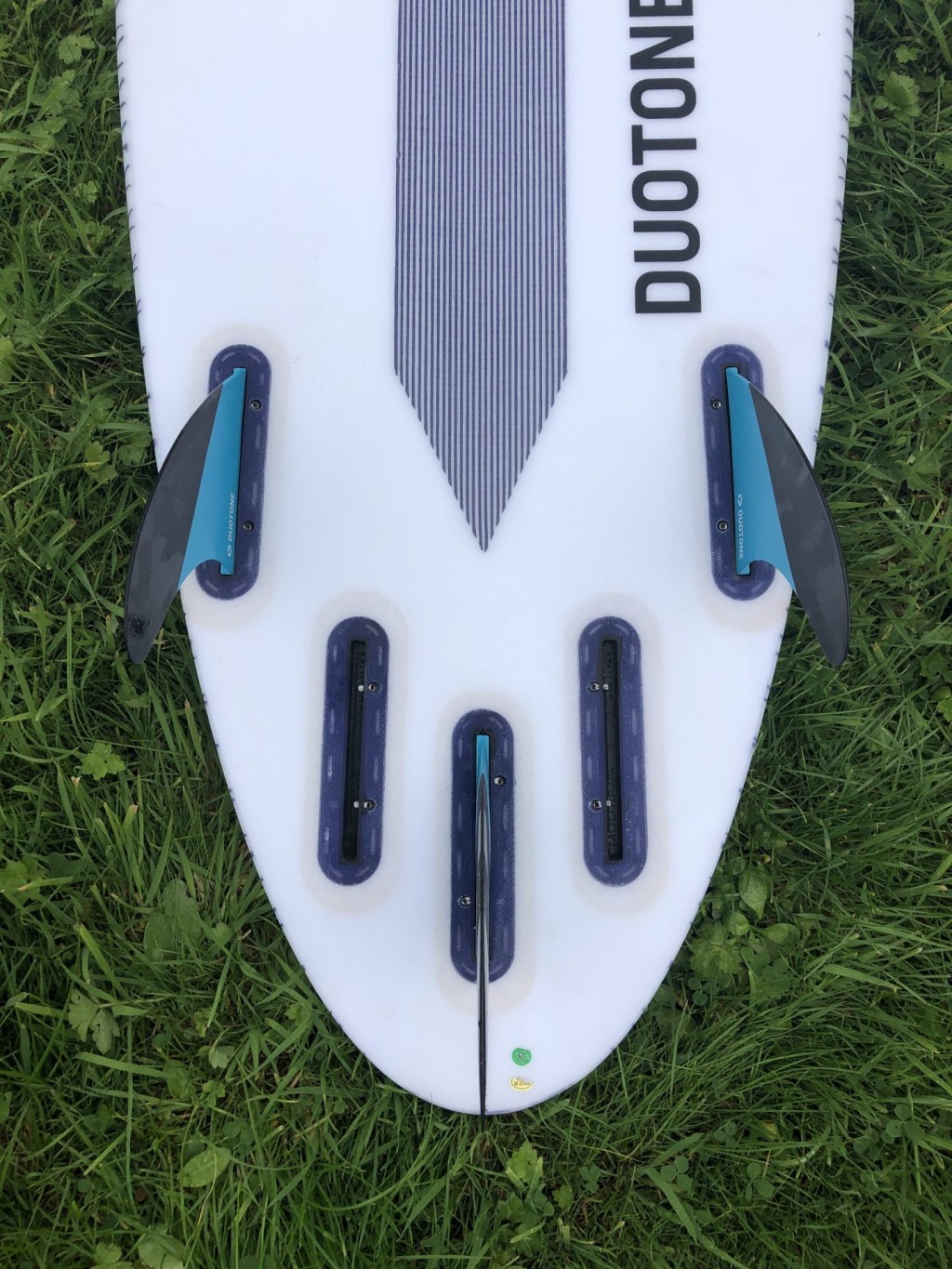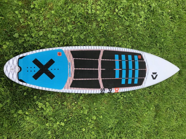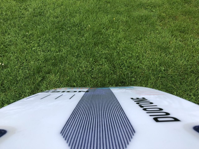 There is a cork shock absorber across the whole top deck, and there are two heel damper areas under the front foot too. Finished with a Technora fibre net the graphics this year are a little bolder than last year. The X marks the spot for your foot placement too - handy. The board comes with new fins and the choice of a Pro Pad, or standard deckpad, or you can just go for traditional wax of course.