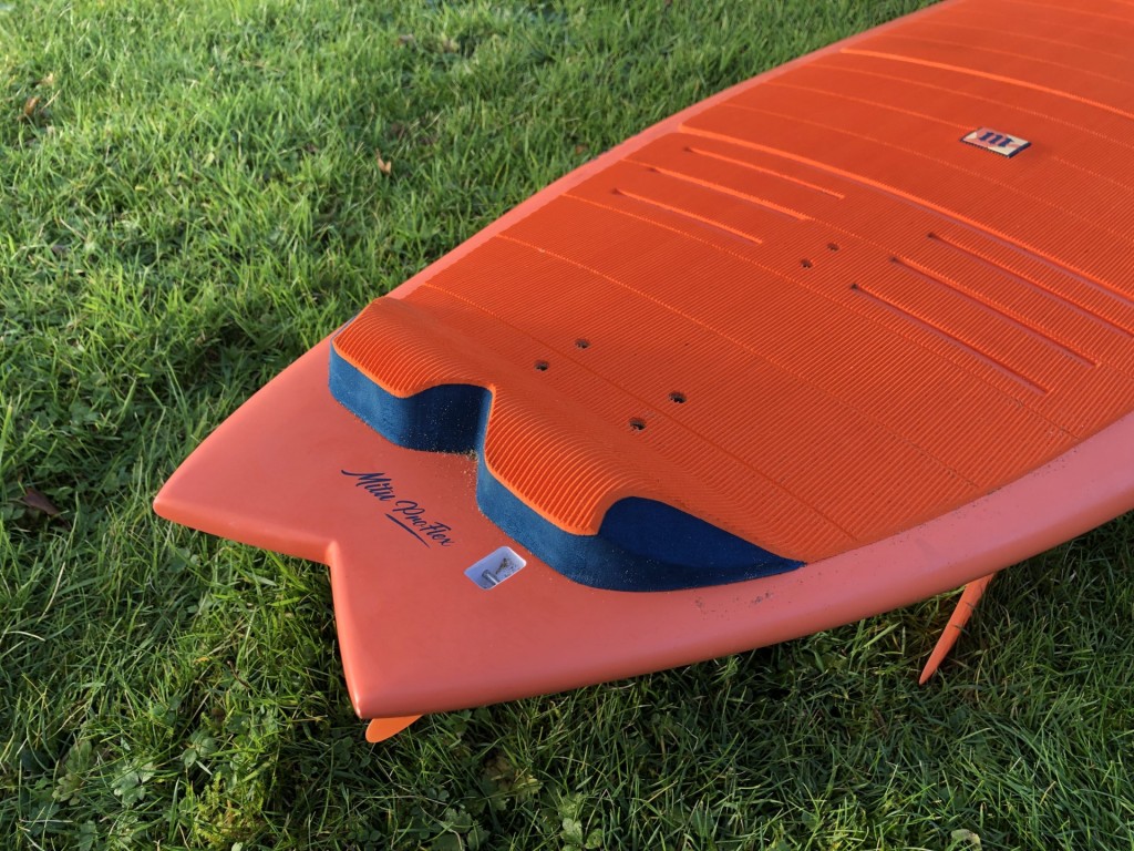 While it is an excellent board for cruising and learning gybes, the Mitu Pro Flex is much more than that. Crank it up a gear, and the speed and pop are impressive, it’s easy to get air, and the board feels locked to your feet as you throw a rotation or trick. The lightweight nature of this construction and the large plan shape helping here.