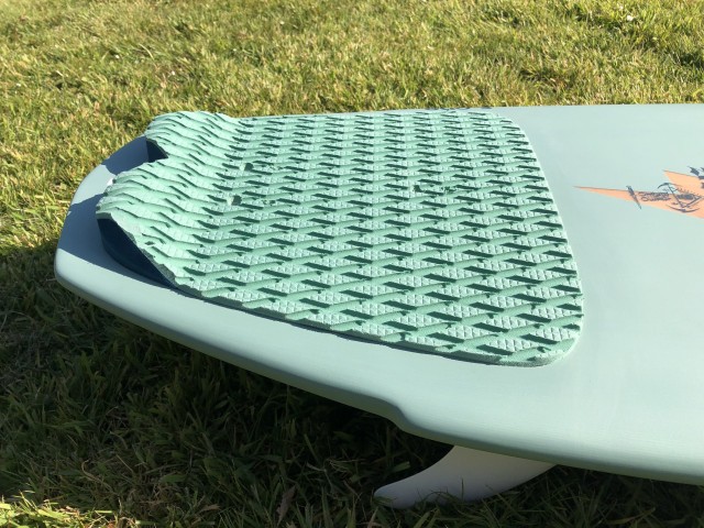 The Bamboo construction has long been used by F-ONE, and it’s very tough and durable. The finish on this board is, as ever, sublime, and it comes with a back pad and inserts for straps too. It is missing a front pad, so it’s a wax job, which we did, or get a pad if you prefer the feeling it offers. With a thruster set up underneath and deep channels with a winged thumb tail, the board had us itching to get on the water.