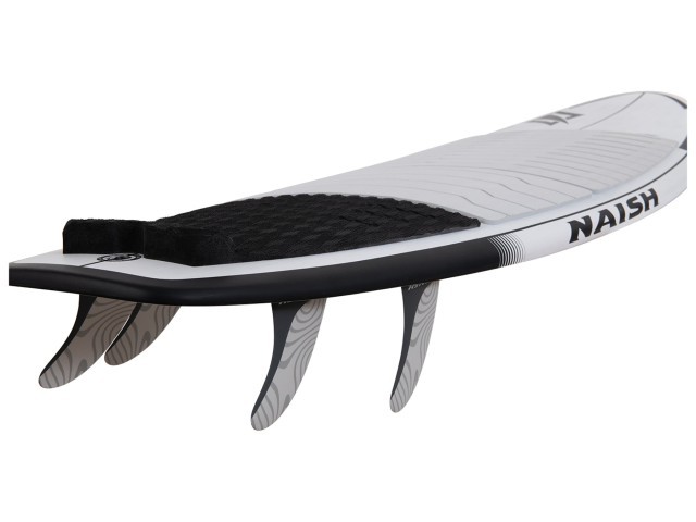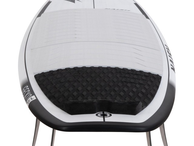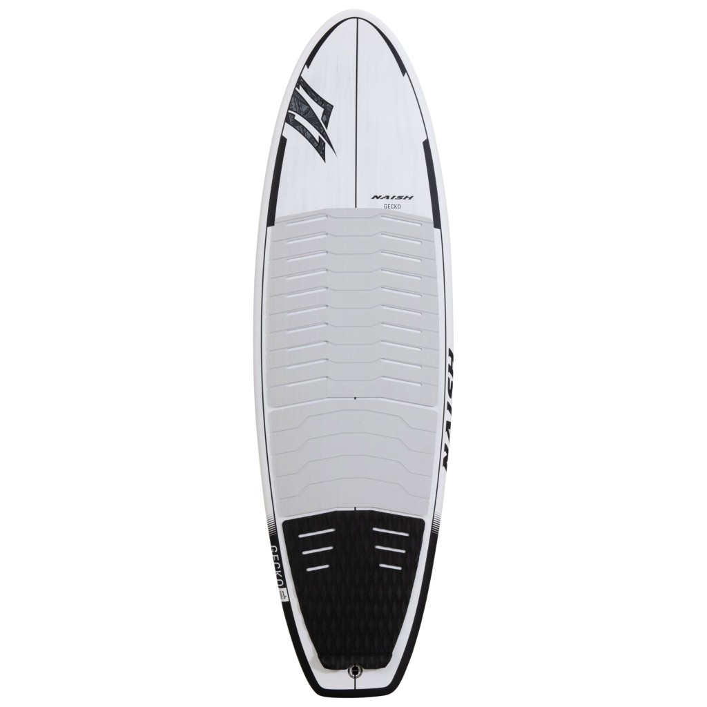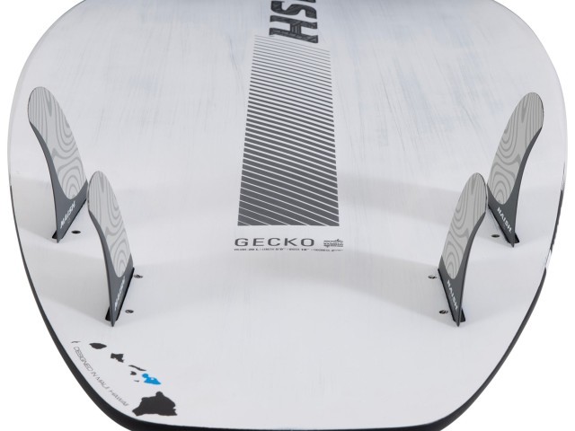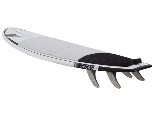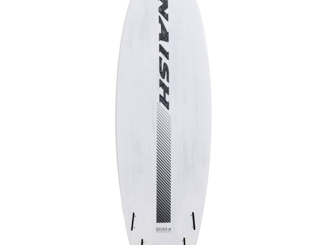 The Gecko features a bullet nose and squash tail, which contribute to its explosive pop off the water and excellent carving capabilities. Additionally, the three-piece traction pad offers optimal traction without compromising foot positioning. The board is also constructed with an additional rail band of 4 oz S-glass, preventing rail cracks even when performing big airs. The wide nose and tail design enhance control for strapless airs, while the parallel rails and quad fin setup amplify control and tracking for strapless riders. The vee nose bottom shape complements the rail and fin setup, ensuring smooth riding in choppy conditions. Lastly, the arch traction pad adds both grip and comfort to your session.