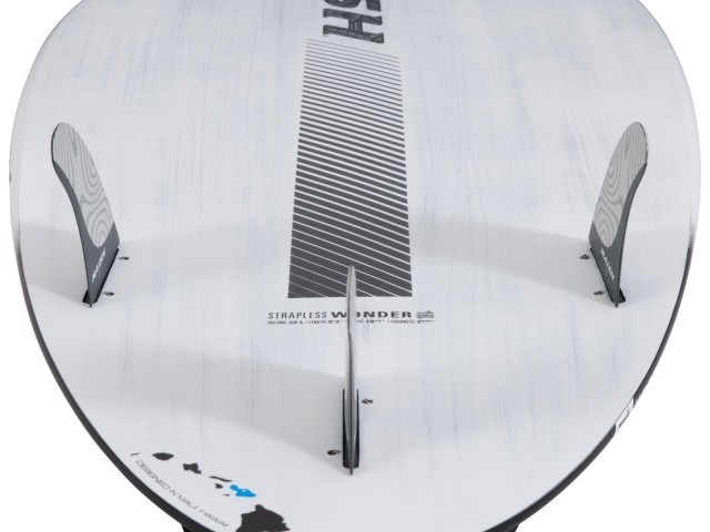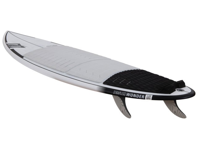 This year, they have made some exciting upgrades to the Strapless Wonder. They have added a traditional single-to-double concave bottom, which allows for an effortless transition from rail-to-rail in both flat water and waves. The wide round pintail shape, thruster set up, and increased volume through the midsection of the board give riders unlimited potential. The generous width ensures maximum flotation and consistent acceleration through turns, whether you're catching a wave or navigating through choppy water. No matter your skill level or riding conditions, the Strapless Wonder will help you reach your full potential.