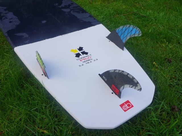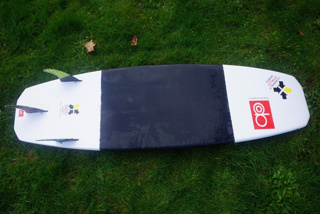 We headed out first of all on the Compact Pro Series 5’2” surfboard. This offering from Odo Kiteboarding is a square nosed surfboard with a Thruster set up, Carbon stringers, grab rail and a Donkey Back deck. Targeting the strapless freestyle market this list of features is set to make it a great contender. The epoxy board arrived looking robust and ready to handle many a session.