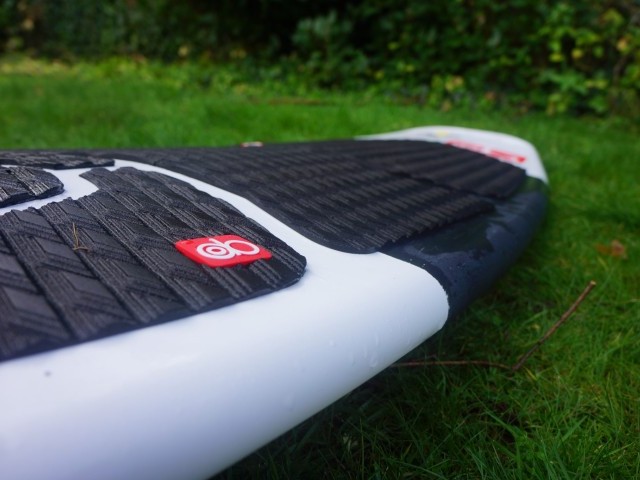 Immediately upon getting on this board it’s apparent just how comfortable it seems underfoot and how well connected with the board you feel, due to the Donkey Back deck. This also allows you to push that little bit harder on the edge for upwind riding. Whether you ride with a full deck pad or wax is very much a personal preference, I personally like a deck pad, but some love to use super sticky wax instead.