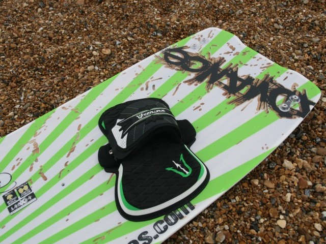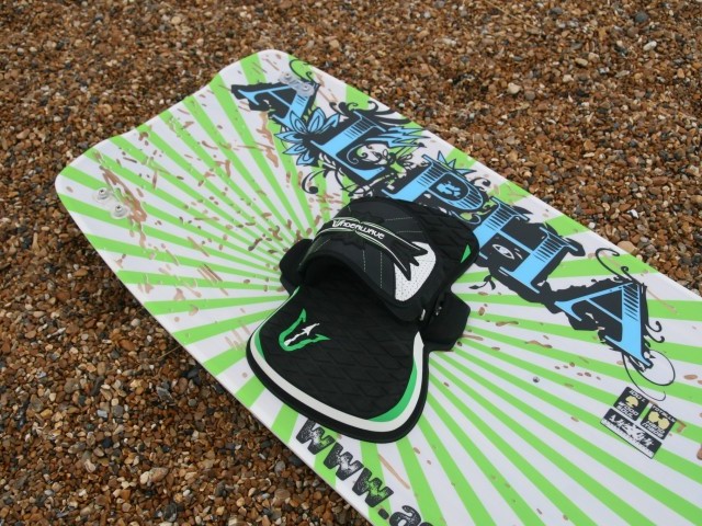 This is a cracking bit of kit for those riders not interested in riding race boards or directionals when the wind is light. The huge width makes a large stable planing platform for the rider. The flat rocker helps to keep the board speed up and coupled with a big kite this can get going in 10 knots of wind, no problem. With the bias of the straps and pads to the heelside edge rail to rail carving is tricky, but this board does have some reasonable pop for a light wind craft, enabling the rider to practice their tricks even when the wind isn’t really playing ball. Upwind the board was good, although it did get a little bit hectic when the wind picked up, you’ll definitely be heading for your normal ride when the wind starts to pump through. The Alpha is great fun to ride when the wind is light; it isn’t going to set your world on fire in terms of performance, but it will see you riding while others are not…