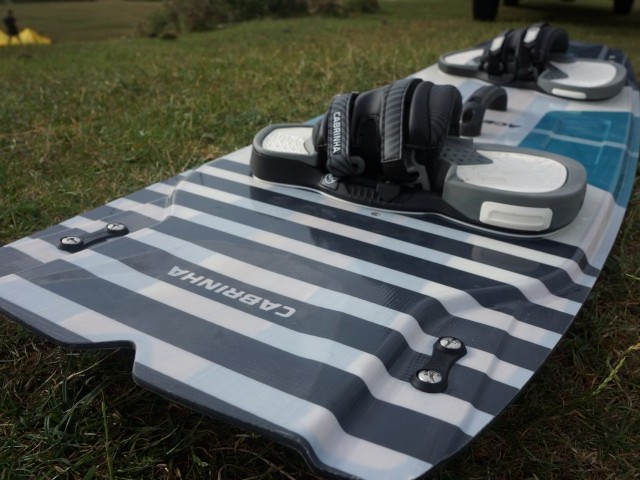There is a moderate rocker, but with a flatter midsection that not only gives those ever satisfying slaps as you land a trick but also promotes an easy and accessible plane and upwind angle. A single concave and quad-tip channels give the board an aggressive yet not over-the-top base look, and though the inserts are boot compatible, Cabrinha recommends this board to be used with their H2O binding set for increased comfort and feedback of the board.