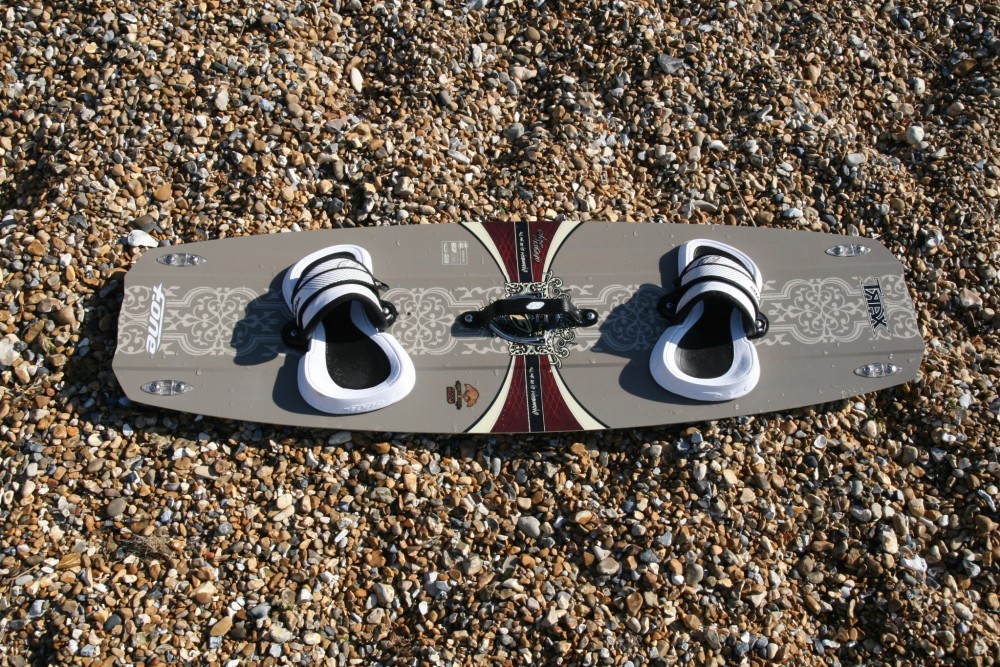 The Trax has been a part of the F-One line up for some time now, it is their performance freeride board aimed at the kiter looking for speed, comfort and performance in an easy to ride package. Last year the Trax 3 was very popular and having seen the Trax 4 and ridden it we would say that once again it looks set to be a winner. The graphics are rather mellow compared to the Acid also in the test! There is a fair bit of technology going on with the Trax 4, it has a very thin wood core at its heart which enables the team at F-One to develop a very thin core which is then laminated in fibreglass, new for this year is a Twist Carbon Control section, which helps to control the lateral twist of the board. The concave and step down the centre of the board is back and the rails have been inverted to help with rail to rail carving. The footpads and straps are excellent and the new mounting system makes it a breeze to put the pads on the board.