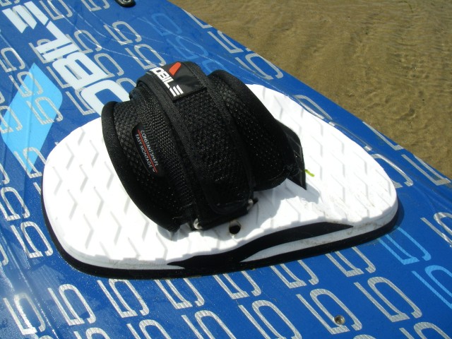 Nobile burst on to the scene back in 2006 and arguably revolutionised the construction of kiteboards. There are now so many other brands using similar technologies that it has almost become an industry standard. Nobile were the first to pioneer the Anti Vibration Technology and this is again present on the 555 as is the Elliptical Progressive Concave. But new for 2008 is a UV Stable textured top foil. This will help keep the harmful UV rays at bay and also stop the board from fading overtime, so your 555 should look as good as the day you bought it all season! There is the usual Nobile honeycomb construction, which makes the 555 very light yet super strong. A neat feature is the clear window that allows you to see the core of the board and what it is made out of. Something loads of the tech minded kiters out there will love! The pads on the Nobile are super easy to put on the board, coming ready to fit with the integrated straps and pads and the bolts already in place. All you need is a screwdriver; no brute force is necessary! That said if you have big feet you might find the pads a little small. There are 5cm g10 fins on the bottom and you get two fin profilers which are small piece of plastic that adjust the rocker of the board slightly on the heelside edge.