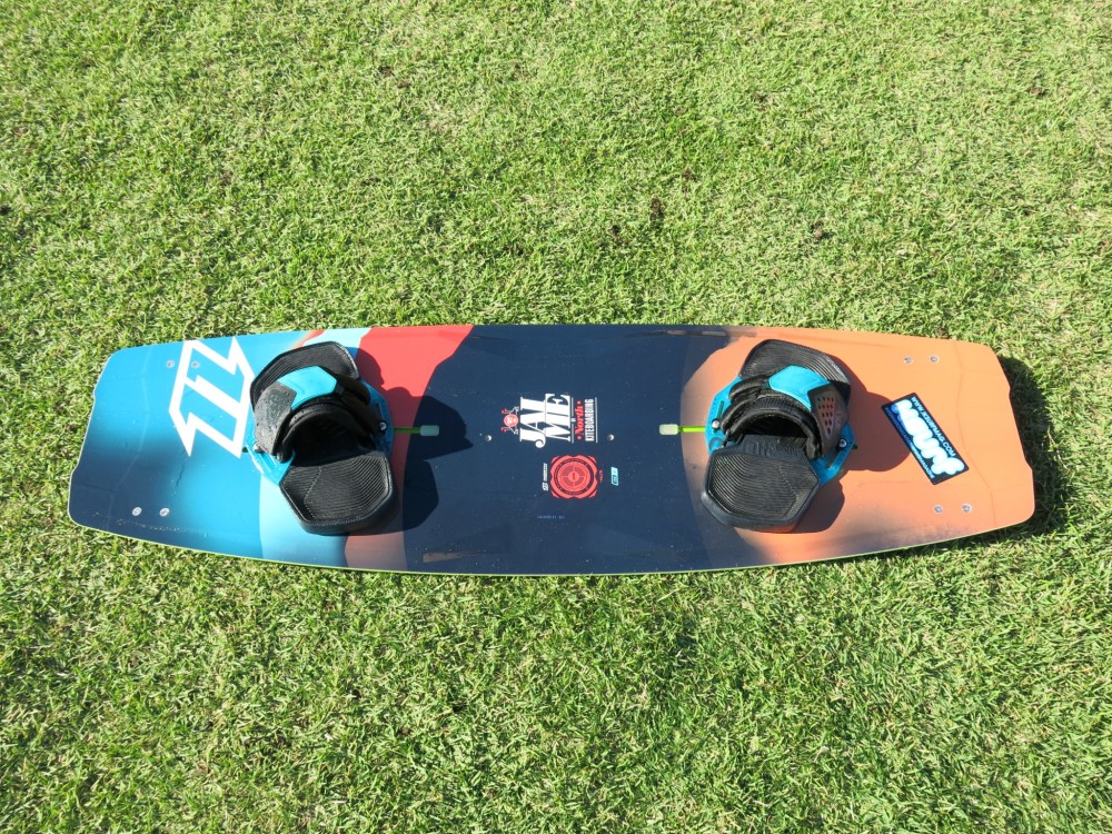 The North Jaime is the best selling kiteboard of all time - North have sold more of these boards than any other board in the range! It’s with good reason too, if you have ever seen Jaime Herraz ride you’ll know why he inspires such a following. It’s a freeride board designed to suit his powerful style of riding, big air and lots of powered tricks is what the Jaime was made for. This year it features a carbon beam to improve torsional stiffness and help control the flex. There is a double V shape to the bottom, step cap construction with thin sharp rails and a progressive flex. Ours was fitted with the excellent NTT straps, which are an optional extra, but in our opinion a must-have. Couple these with the slider track system and you have almost limitless stance options.