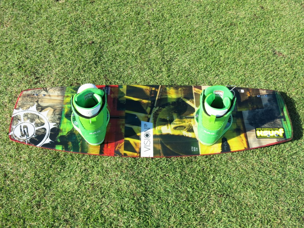 We've been riding the Vision over the last couple of weeks and it would be fair to say we have fall-en in love with it. The board has performed way beyond our expectations and it took quite a bit of head scratching to figure out why it works so well. When you initially give the board the kitesurfing equivalent of a tyre kick, namely a flex test, it is surprisingly stiff. Our first outing was on some but-tery flat water and we found it to be fast and smooth with immense pop, as you would expect from a stiff board on flat water. Obviously not everyone is blessed with conditions like this and so we took it out in some of the harshest chop we could find to see how it faired. Expecting the ride to be harsh and leg busting due to the stiff nature of the flex we were pleasantly surprised to find it rode exceedingly well. The Vision, seems to sit much lower in the water and smash it’s way through the chop rather than using flex to smooth it out. The channeling, rails, rocker and outline all work in harmony to create a smooth ride. We did notice when it was underpowered in chop there is a ten-dency to get a face wash, but as soon as you are powered up this disappears. The pop from this stiff board is ridiculous, and it will put a smile on the face of anyone who rides it. We've been rock-ing the board with the Slingshot Rad bindings and are loving the set up…