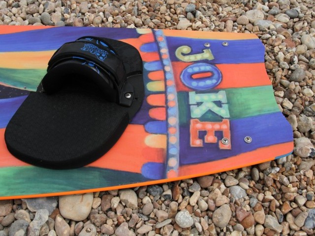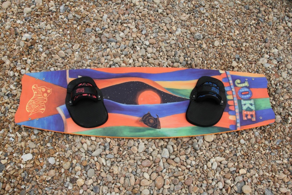 Striking would be one word to describe the Joke, pimp would be another. Calling on some seriously artistic graphics the board certainly delivers in the looks department, but it doesn’t stop there. It comes with 4 small wakestyle fins, straps and pads and, wait for it, a multi-function screwdriver and a padded board bag! OK so it isn’t the cheapest board on the block but in terms of a deal you get a few nice touches with it. Everyone loves the screwdriver (small things eh) and the padded bag ensures your board will remain in tip top condition! The shape of the board is also quite unique, the mid section is slightly convex, creating a bubble in the middle of the board. This filters out into double channels at each end. The bubble is designed to give the board a “skatey” feel during surface passes and switching but it is also there to soften the landing and keep the board smooth through the chop.