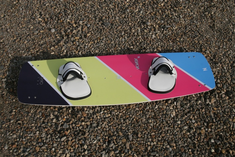 The Rayo from Xenon is their all round do it all board. That’s not to say it has been left behind in terms of features, far from it. It borrows much of the same technology from their higher spec La Luz model. The main differences being the construction, the Rayo uses a wood core and biax glass lay up, instead of a carbon one. This leads to a softer flex on this board, steering it more towards a forgiving ride than ultimate freestyle performance. Looks wise Xenon have hit the nail on the head again and this board is sure to be a head turner at the beach. The finish is excellent with a UV resistant gloss topcoat and a matt underside. G10 fins come as standard and the footstraps are not only easy to put on the board but also super comfy.