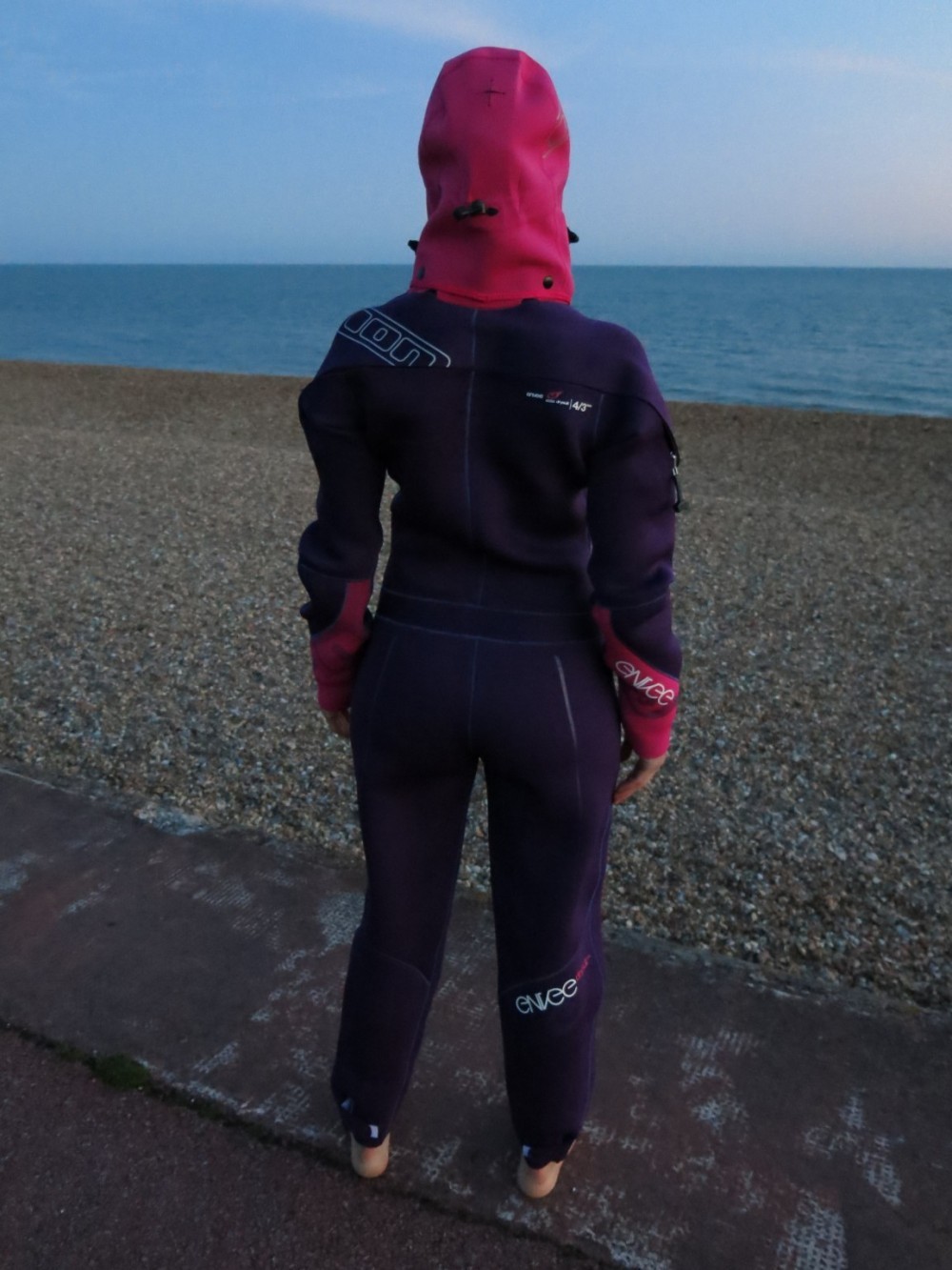 Cut and designed to fit the female form the Envee instantly feels much better on than the men’s drysuits I tried last year. Movement is good and you don’t feel like you’ve got lots of excess material weighing you down or getting in the way. Equally your hips and boobs have been accommodated for, much appreciated!