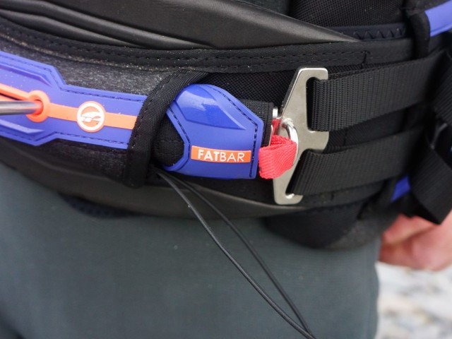The Fat Bar works really well alongside the four tightening straps and the spreader stays in place and tight through-out your session. What’s awesome to see is the metal loops for attaching your leash to the spreader bar. With the new shorter leashes this is great, placing the final release in eyesight. For those handle-passing it’s a brilliant option allowing you to land on the board if you drop the bar on a pass (this also avoids the backwards suicide leash drag).