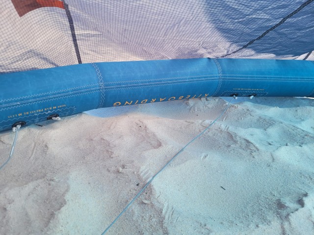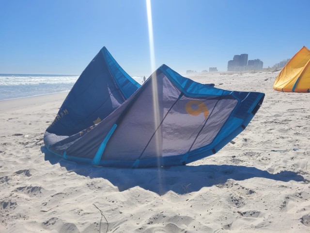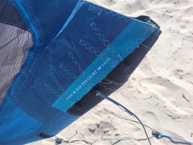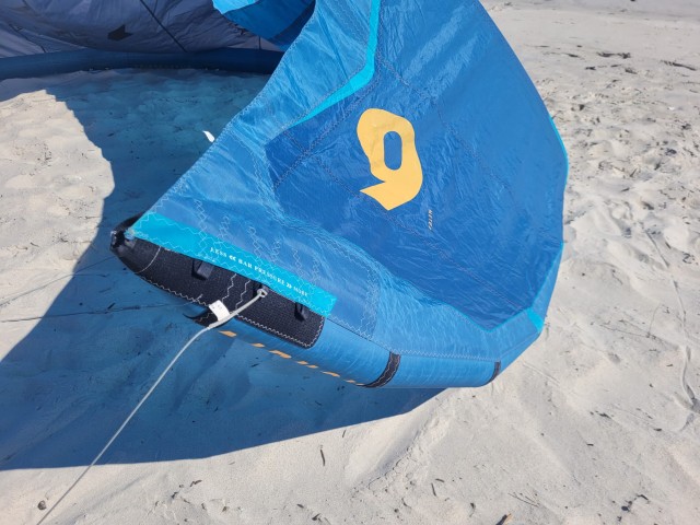 With the pulleyed V3 bridle, the kite is very well-balanced and felt great in the hands. We always knew where the kite was on the beach and on the water, even mid-jump and halfway through a rotation. Helpfully, it was still very flyable, even with the bar sheeted out, so you can still recover the kite in a crash situation.