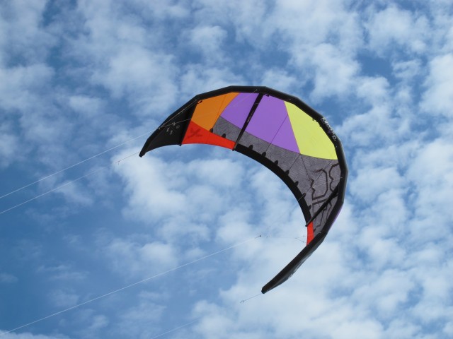 The 10.5 Kahoona is a real powerhouse of a kite; the large profile area created by loosing the centre strut creates a big power boost in light winds. The profile and shape of the kite combine to offer it almost unrivalled low-end ability. This means you can often get away with a smaller size than you would think. The bar pressure isn’t too heavy, medium to light allowing you to feel where the kite is in the window. It isn’t the fastest of kites in terms of turning speed, but that does afford it some predictability and give less skilled riders the ability to keep things at a controllable pace. And that is where the Kahoona is pitched, the beginners and intermediate riders looking for an easy to fly stable platform on which they can progress their riding. Relaunch is really good, the kite rolls onto it’s side very easily comes back up into the air in a controlled manner. The depower is good too, you can dump all the power from the kite by pushing away on the bar and when you pull the bar back in again the power delivery is progressive meaning you can keep the kite under control at all times. As a free ride kite it will still excite you too, being stable and predictable means you can practice your moves without worrying too much about what the kite is doing. Best suited to beginners and intermediate riders looking for a do it all kite that is easy to fly.
