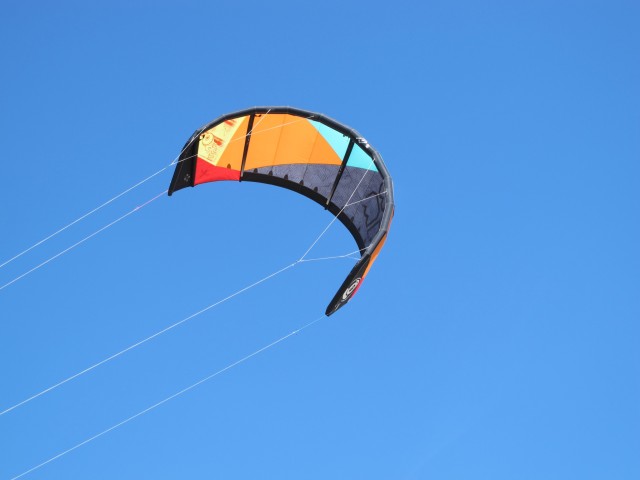 Speed and precision come to mind here; the TS v2 is no slouch when it comes to steering it around the window. The simple bridle and direct connection to the rear end of the kite, coupled with the wide tips have the kite shifting around like nervous girl on prom night. It’s so direct and the feedback is so good to the bar the kite feels like an extension of your arm and certainly not like it is 22m away from you. This lack of steering lag means it is more like a sports car than a super tanker and as such it delivers some blistering performance on the water. Sending the kite back through the window generates a serious amount of power and the TS v2 is a joy to jump with, the canopy shape and profile provides plenty of hangtime when you are up there, and a nice easy float down. Upwind is good, the low profile leading edge allowing the kite to penetrate the wind window and depower is excellent too, we had the kite out in about 30mph of wind and it still felt stable and the steering remained consistent.