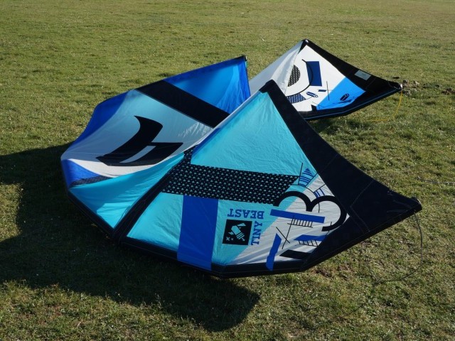 Once riding, the Tiny Beast is controllable and produces a considerable amount of power for such a small kite. The speed of the kite generates fantastic apparent wind to really get you screaming along. Upwind is easy, and the kite has very much a park and ride attitude once you are up to speed; great for concentrating on your own riding rather than worrying about the kite.