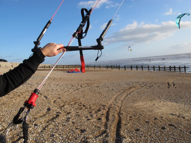 The 2012 bar is very similar to the 2011 model, just some graphical changes and a slightly different grip. It is very simple and the whole set up is clean and functional. The primary safety is a total depower front line affair, which connects through the centre of the chicken loop. The chicken loop itself uses the same plastic moulded release system and the unit will spin to untwist your lines. There is also a stopper ball set up which allows you to go for old school manoeuvres.