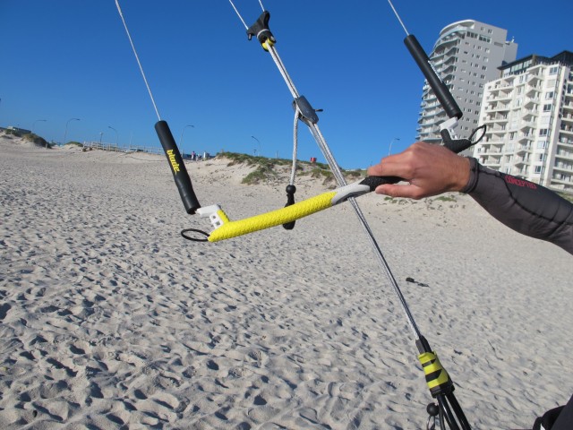 New for 2013 is the Uni bar from Blade, we were lucky enough to see a near final prototype whilst we were in South Africa and were very impressed. The bar has been completely reworked from the previous years version and, in our opinion, it is an excellent bar system. It features a new quick release that is compact, neat and simple and above all very easy to release and reconnect. The trim for the kite is now looked after by a cleat system, still above the bar, but it is much neater than the old webbing pull-pull set up. There is also a new swivel for the front lines and the set up uses high quality Teufelberger FL series lines, previously only seen on North bars. These lines have a much better stretch resistance without being any thicker than the previous lines. At the heart of the bar is a solid billet of aluminium to ensure stiffness and this is wrapped in a special nylon shell to give the bar its shape and finally wrapped in a soft EVA grip.