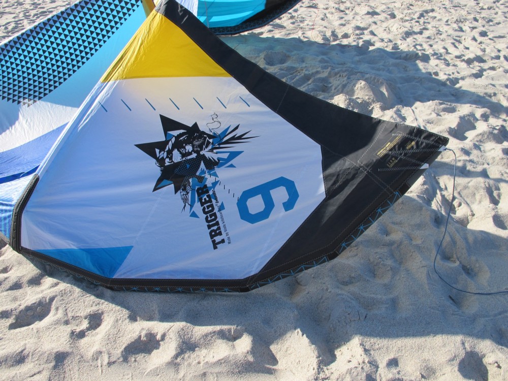 The new wingtips are the big news here, and they play a big part in the way the kite flies. It feels altogether more responsive and lively in the air, the direct connection and short bridle allowing you to have total control of the kite. The depower range is good, and there is a relatively short throw to control the kite in gusty conditions. Upwind the Trigger really excels, it really penetrates the wind window and hauls ass upwind. This is great for maintaining your spot on the beach when boosting big airs, or for getting back to the peak when you are wave riding. In the waves the kite is more of a flyer than a drifter, keep it moving as you turn the board and it will reward you with plenty of power at the right moment. The direct and responsive steering make the Trigger excellent in a freeride role, you can really send it back through the window and its speed will wrench you off the water with some force. Hangtime is good and the kite delivers plenty of float. It is an easy kite to fly and delivers plenty of power, but it is a kite that likes to be flown, so would suit the intermediate to advanced rider looking for a dynamic kite.