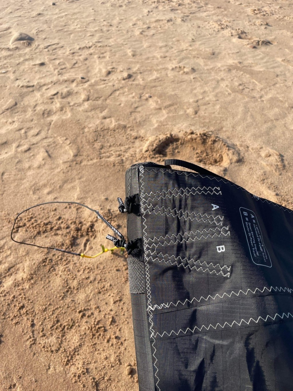 The thin bridles allow for crazy quick loops with a small turn radius. The 5-strut exo-skeleton holds down those gusts and then lets loose once you send the kite up to 12 and sheet in. Once in the air, the kite holds you up there for ages. On the wing tips, there are two connection points: "A and B", that drastically change the kite feel. If you use the "A" setting, the bar pressure is noticeably lighter.