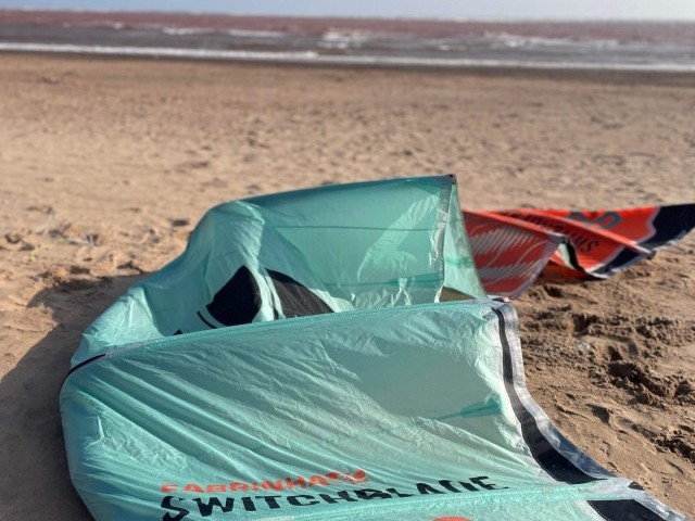 For such an aggressive kite, the Switchblade rockets upwind. The profile of the kite facilitates this by having unique panel placements, which helps encourage clean airflow. Relaunching a 5-strut kite can be difficult at the best of times, but I found that the 02 Switchblade glides out of the water with ease, even during a lull. The swept back wing tips allow this to happen. Additionally, the swept back nature of the Switchblade's design encourages the kite to be better in lighter winds. These all culminate in a more well-rounded kite for Switchblade riders.