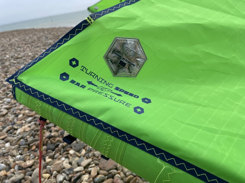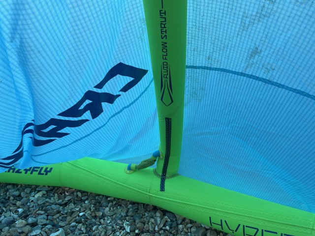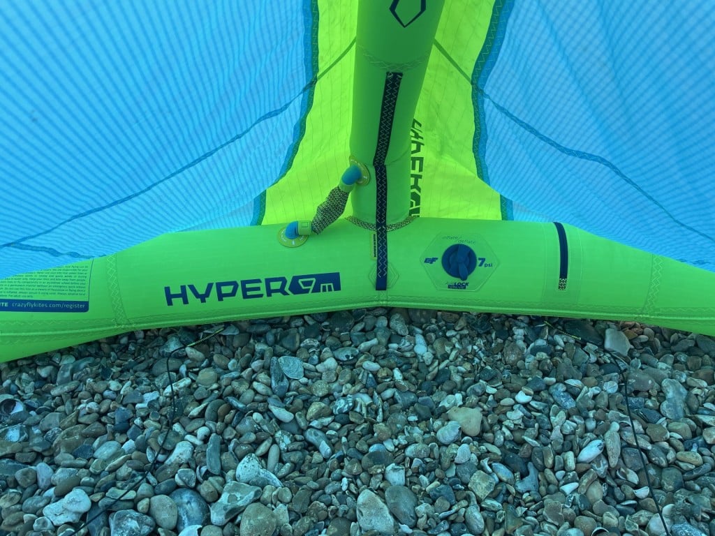 Furthermore, the Hyper 2021 includes an airlock valve in the kite. This valve is super easy to use and deflates instantly, which is a bonus with a 5 strut kite! Contact with abrasive surfaces can seriously damage the kite’s material and so CrazyFly has incorporated Arptex into all their kites. This green and black material is added to all the common contact point such as the wingtips and strut connection points to prevent damage to the kite.