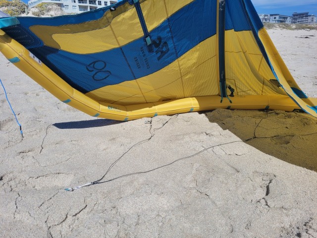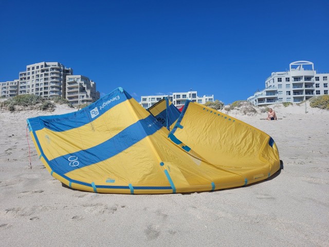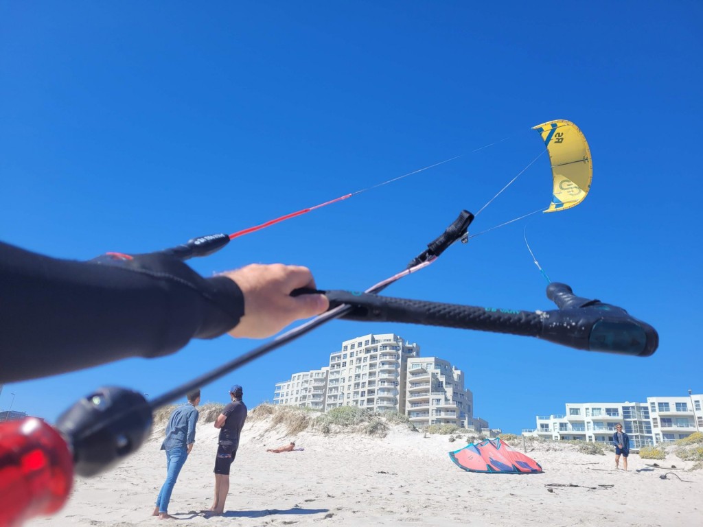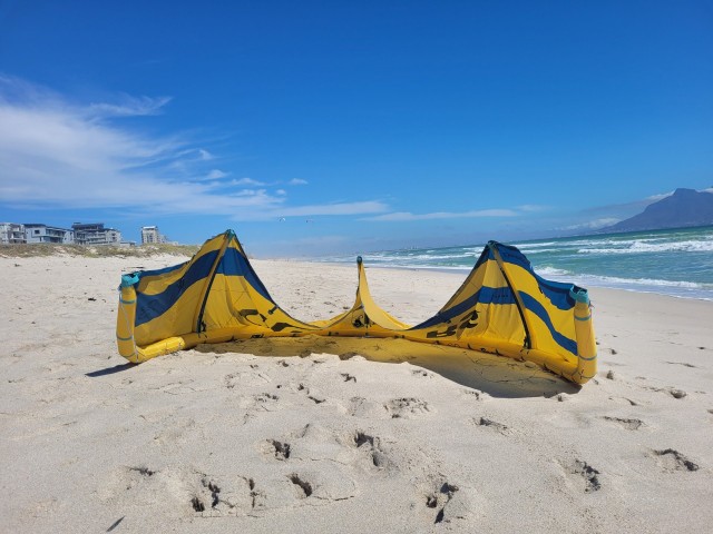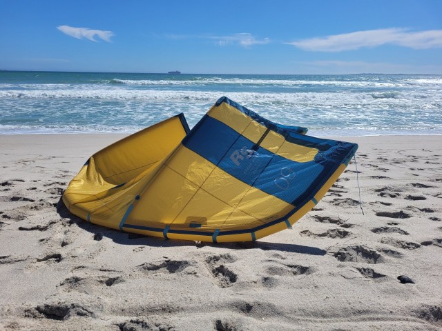 We scored with testing conditions, and luckily, because this demo kite was in such high demand, we could only hang onto it for a few days! We flew the 9m RS V5 in winds that started out at 15 knots, increasing to 25 knots in the afternoon. That's a Cape Town 25 knots, by the way, which is quite a bit punchier than a Caribbean 25 knots. These are ideal testing conditions for a crossover kite, which means we can try it with a twin tip and on the wave board to see how it shines.