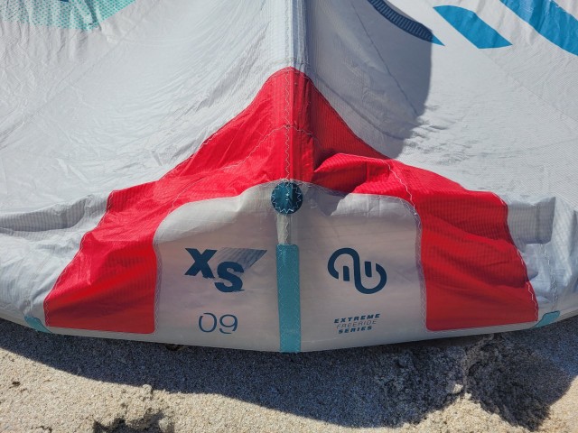 Looking at the XS V2 out of the bag, it is a delta hybrid shape and looks like a proper big air and freeride performer. The kite looks and feels solid, built with Teijin Techno Force X4 Ripstop and XT Tenacity Cloth. There are reinforcement patches in all the right places and a reinforced trailing edge with battons to reduce flapping and improve stability. The bridles are made with robust lines and feature one pulley on each side.