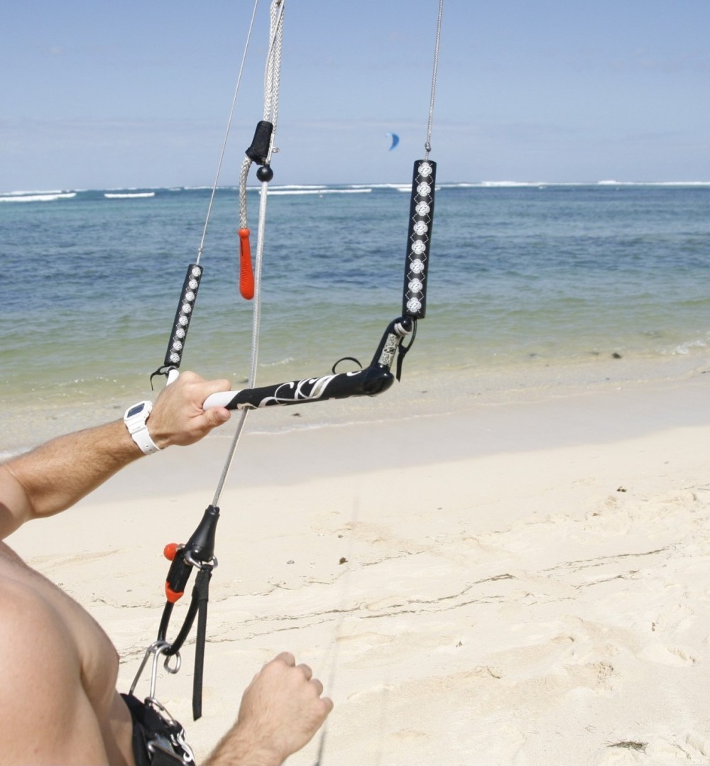 The new bar from F-One is still in the production stages, we got to see a sample of the new one piece aluminium moulding and we can confirm it is super light and really stiff. What we did get to try on our test 11m we brought home with us was the new rigging set up on an old bar. The new chicken loop still uses the Velcro release system but this year sees a moulded plastic release handle, the same handle is on the end of the depower strop which is again above the bar. As ever it is a beautifully simple system and the bar feels totally uncluttered. Whilst we liked the new chicken loop release we did feel it rubbed a bit on your hands every now and then. Perhaps with time it will soften up.