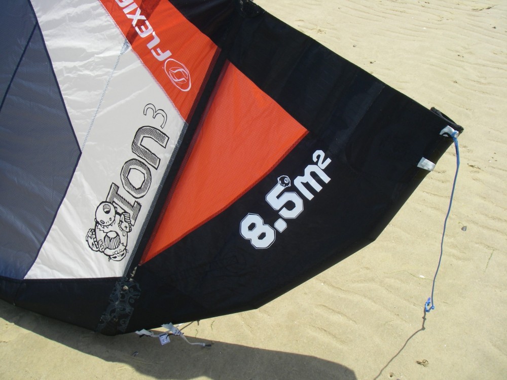 Once in the air the kite looks higher aspect than last years model, being a longer thinner design and looking considerably more sporty and eager than the Atom 08. The bar is different too with o-shit handles on both sides. In 4-line mode the kite still delivers that very direct feel that we loved so much about its predecessor. The simple bridle and direct connection on the rear lines combining to give the kite extremely responsive handling. The thinner leading edge help to get it cranking upwind and the kite is very eager to fly through the window with some speed. The depower is impressive as is its handling in really gusty conditions, giving the rider a real feeling of confidence no matter how crappy the conditions get. The relaunch is easy and the kite when crashed sorts itself out pretty quickly. The high aspect profile enable the kite to jump with some serious pull and when the winds are up the 8.5 will have you hanging about with the best of them. Many bow style kites used to be let down with their kite loops, but over recent years we have seen that change, the Ion 3 is perfectly happy flying round through the power zone and the pull is substantial and consistent. There isn’t really much that the kite doesn’t excel at. When you look at the design specification Flexifoil had for the Ion 3 it would be fair to say they achieved their goals.