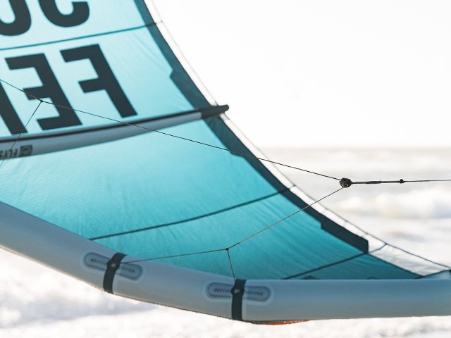 To distribute forces optimally, the movable bridle anchor points are strategically placed on the leading edge. This avoids tension peaks and adds to the durability of the kite. Additionally, the bridle system can be easily removed and replaced when needed.