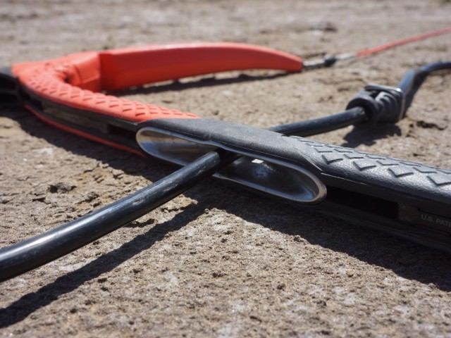 The bar itself is carbon composite for lightweight and extreme strength and is covered in an incredibly grippy yet comfortable EVA grip, which even in cold waters using neoprene gloves you a have a good hold of. Being a unique ‘U’ shape, this encourages sand, debris and water to drain out of the open bottom of the bar. The centre line insert is extra wide on the bottom to allow for easy turn and sheet abilities which is great for those days where you need to be working the kite.